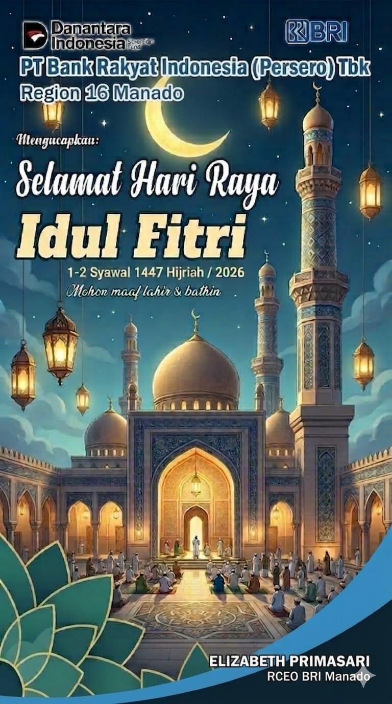 Sambut Lebaran 1447H, BRI Region 16 Manado Siapkan Kebutuhan Kas Sebesar Rp750 Miliar
