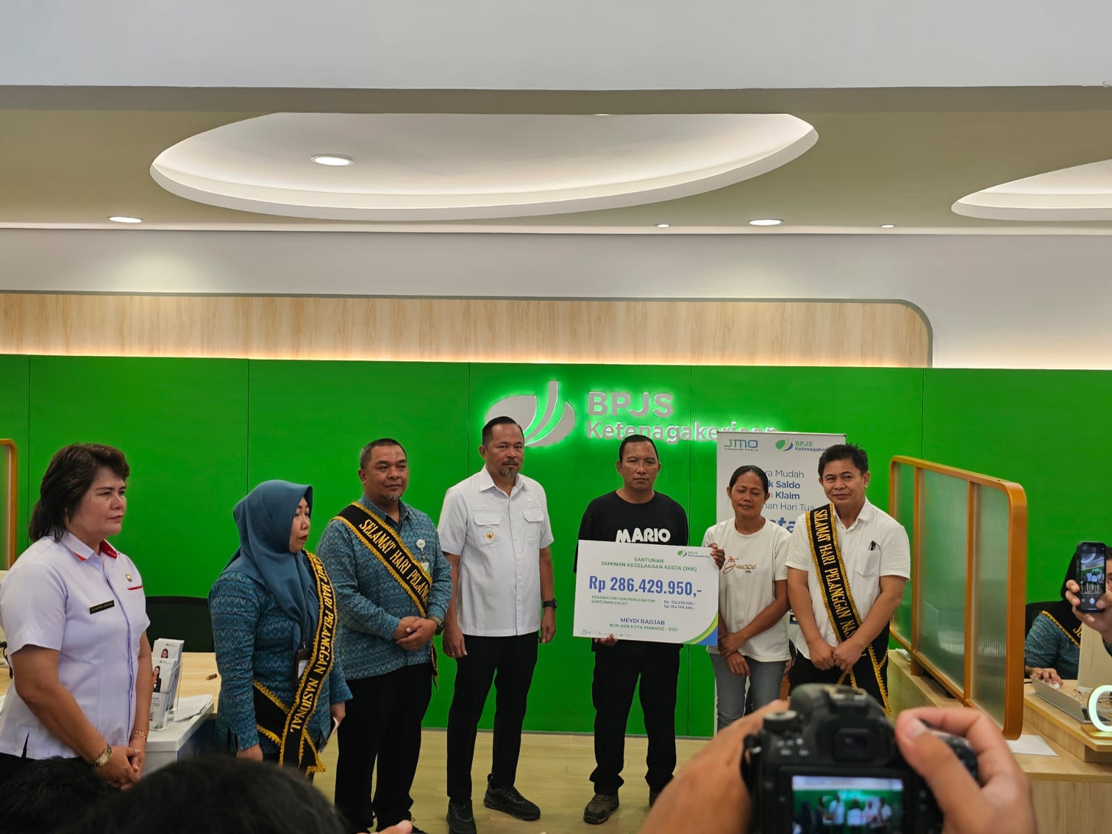 Manado, koranmanadonews.com – BPJS Ketenagakerjaan bersama Pemerintah Kota Manado menyerahkan santunan Jaminan Kematian dan Kecelakaan Kerja kepada ahli waris dan peserta di Hari Pelanggan Nasional, Rabu, 4 ⁸September 2024.