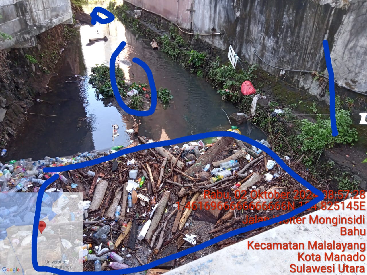 2. di daerah Malalayang rata-rata air meluap akibat penampang saluran tidak sanggup menampung volume air termasuk saluran jalan RW Monginsidi rata- rata sudah tidak sanggup menampung volume air.