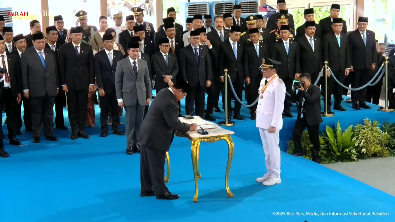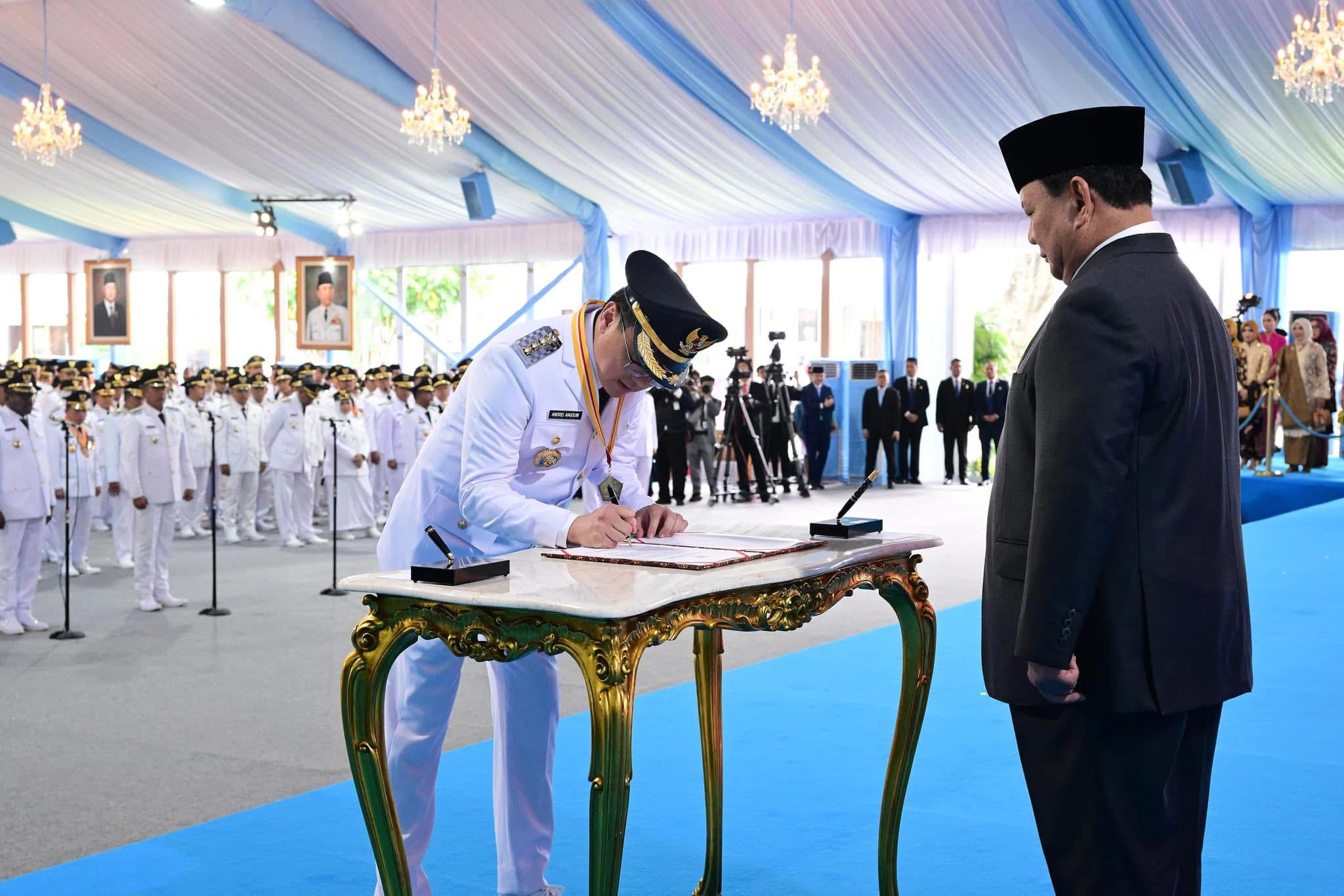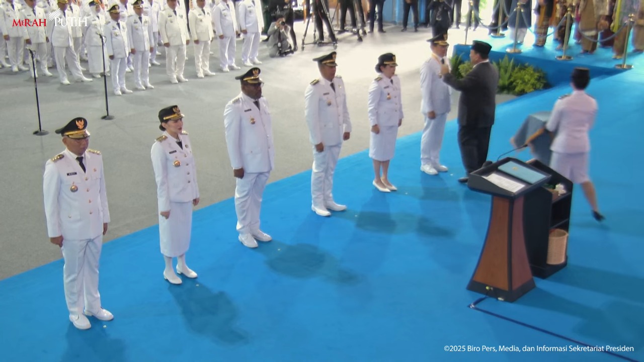 Prabowo kemudian memimpin pengambilan sumpah jabatan para kepala daerah. Berikut bunyi sumpah jabatan yang diucapkan para kepala daerah, yakni