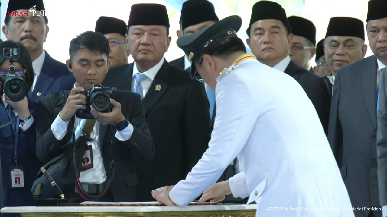 Pelantikan digelar di halaman tengah antara Istana Kepresidenan, Jakarta Pusat, Kamis (20/02/2025). Acara ini diawali kirab dari Monas menuju Istana.