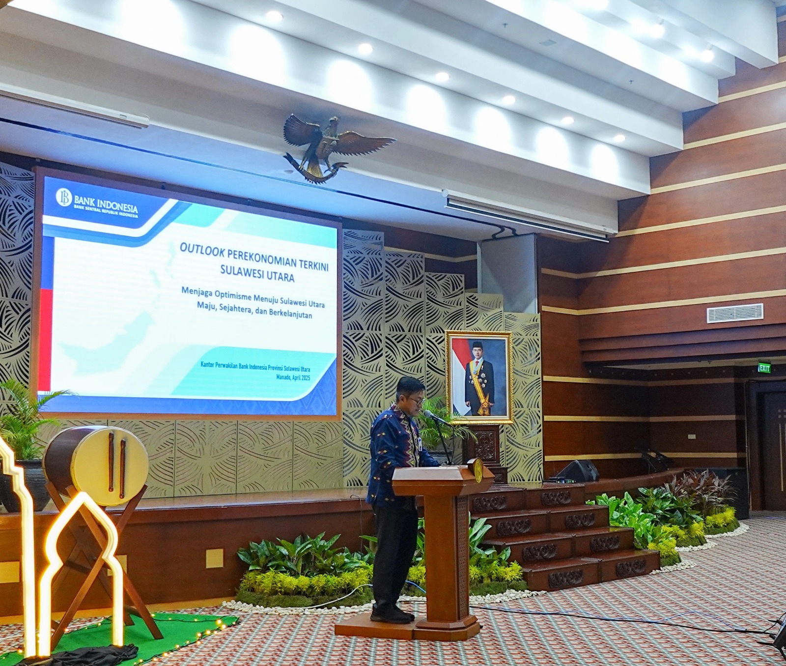 Kepala Perwakilan BI Provinsi Sulut Andry Prasmuko menyampaikan kondisi perekonomian global, nasional dan Sulut, yang dilanjutkan dengan outlook pertumbuhan ekonomi dan inflasi tahun 2025 dan 2026, menyebut dari Sisi pertumbuhan ekonomi, pada tahun 2024 Sulut (5,39%, yoy) tumbuh lebih tinggi dibandingkan Nasional (5,03%, yoy).