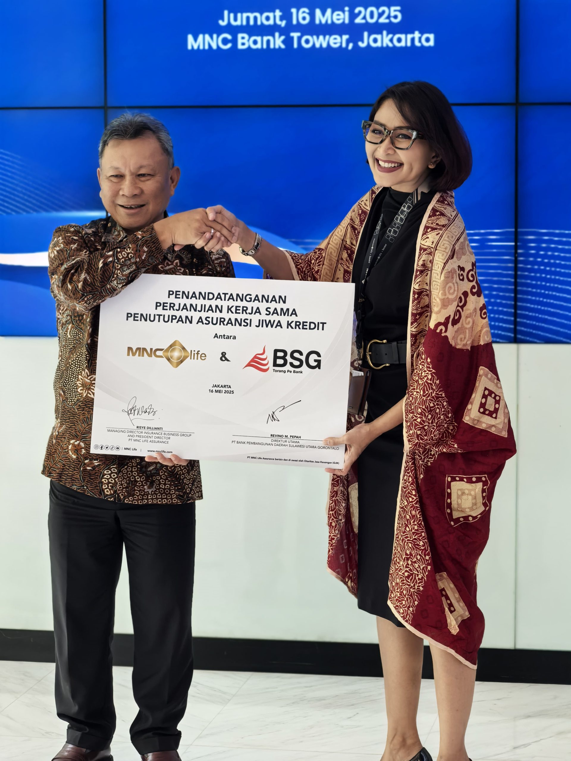 Penandatanganan nota kesepahaman ini berlangsung di Gedung MNC Bank Tower, Kebon Sirih, Jakarta, sebagai langkah awal sinergi antara sektor perbankan dan asuransi dalam memberikan perlindungan finansial yang lebih komprehensif. (16/05/2025).