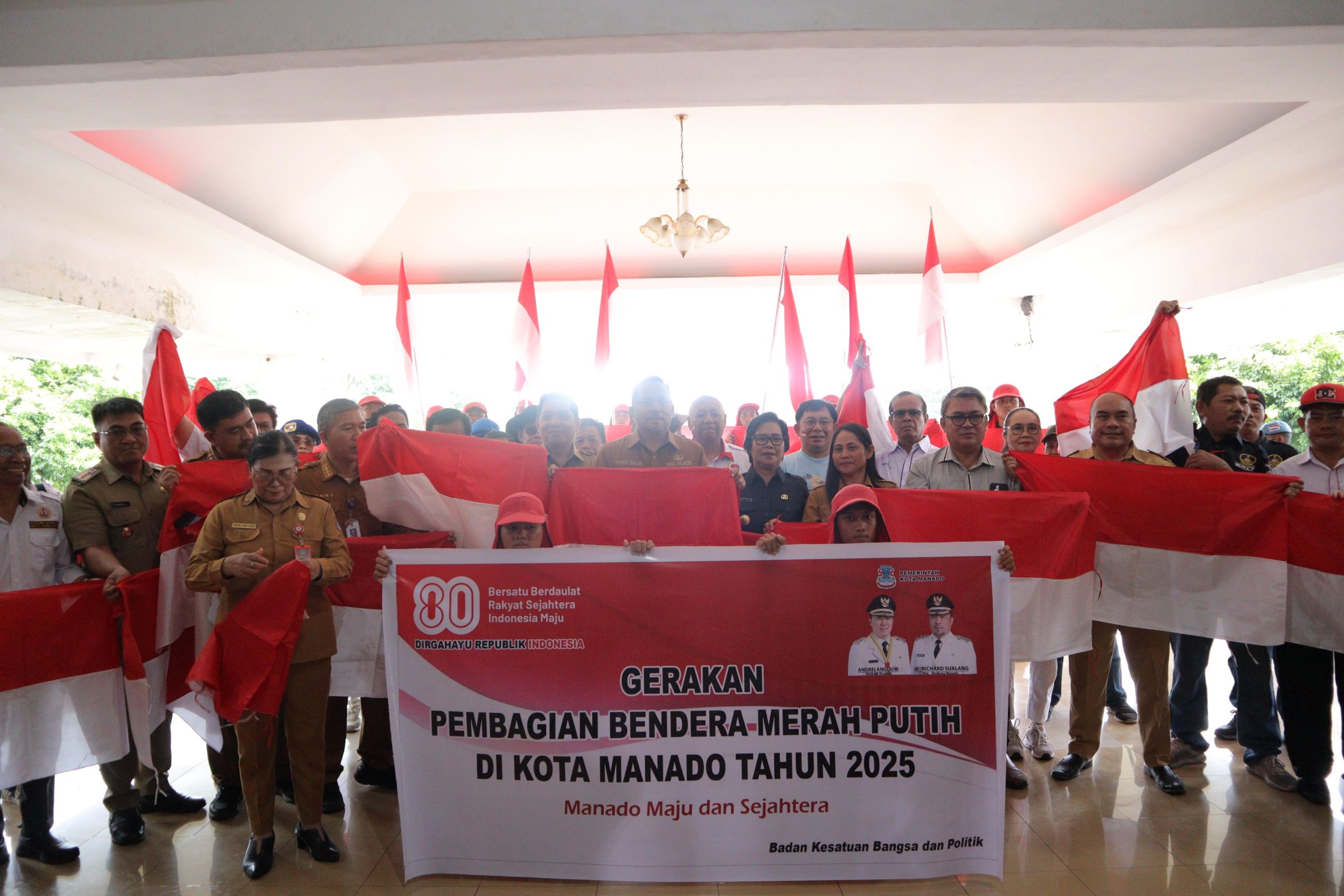 Sebanyak 10 ribu bendera Merah Putih dibagikan kepada masyarakat Kota Manado dalam peringatan HUT ke-80 Kemerdekaan Indonesia tahun 2025.(ferry)