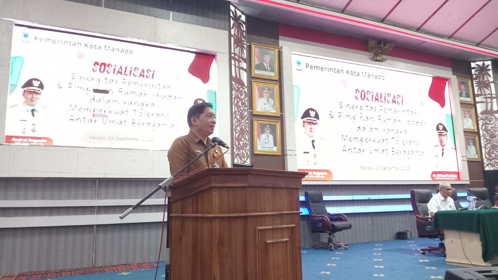 Koran Manado News- Sekretaris Daerah Kota Manado, dr. Steaven Dandel, MPH, memberikan penjelasan terkait pembangunan Instalasi Pengolahan Lumpur Tinja (IPLT) di TPA Sumompo. Hal ini disampaikannya saat membuka kegiatan Sosialisasi Sinergitas Pemerintah dan Pimpinan Rumah Ibadah dalam Memperkuat Toleransi Antarumat Beragama, Selasa (23/9/2025), di Gedung Serbaguna Kantor Wali Kota Manado.