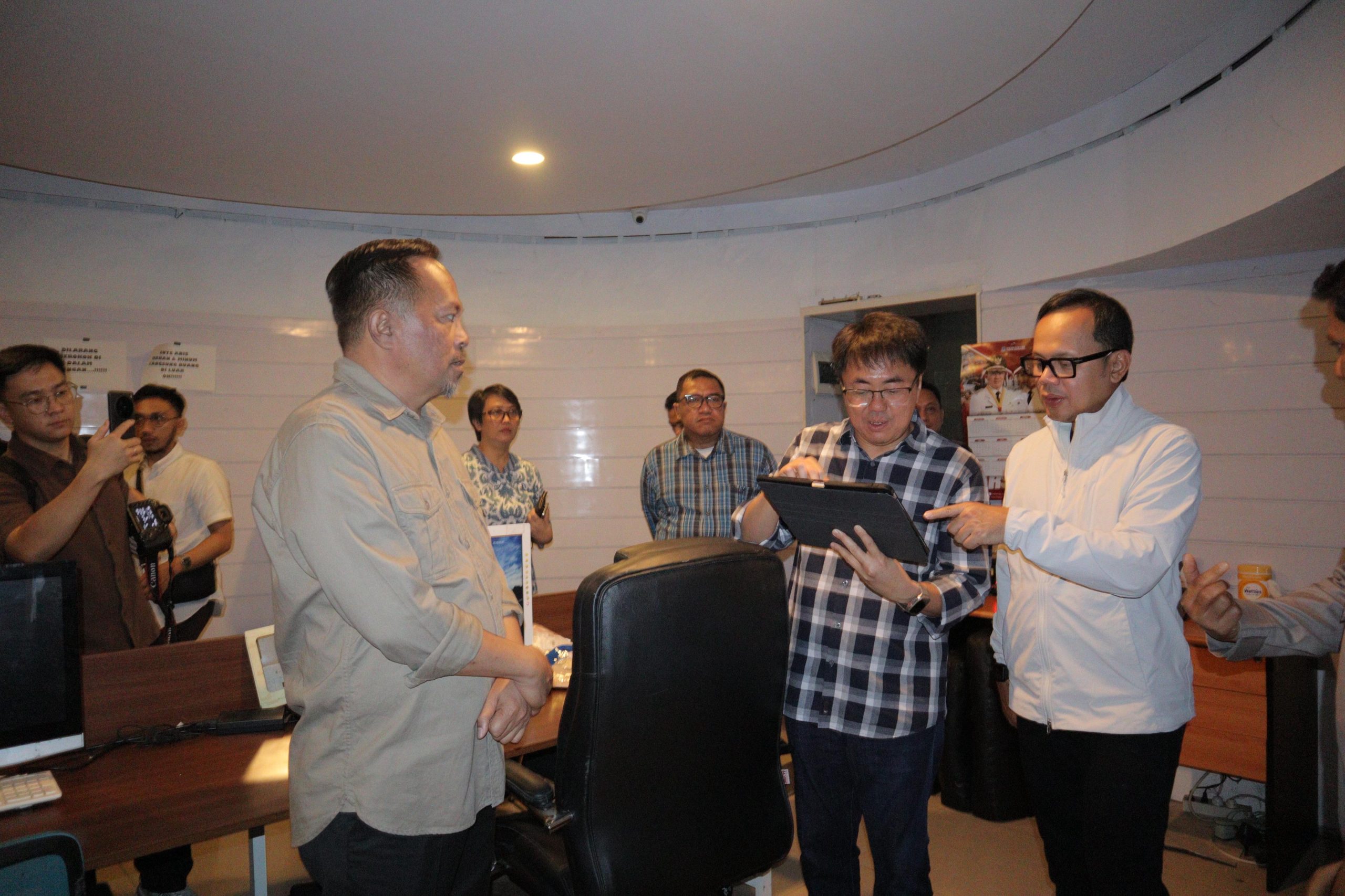 Ditemani oleh Walikota Andrei Angouw dan Wakil Walikota dr. Richard Sualang, Bima Arya menyempatkan diri melihat ruangan command center Pemkot Manado.