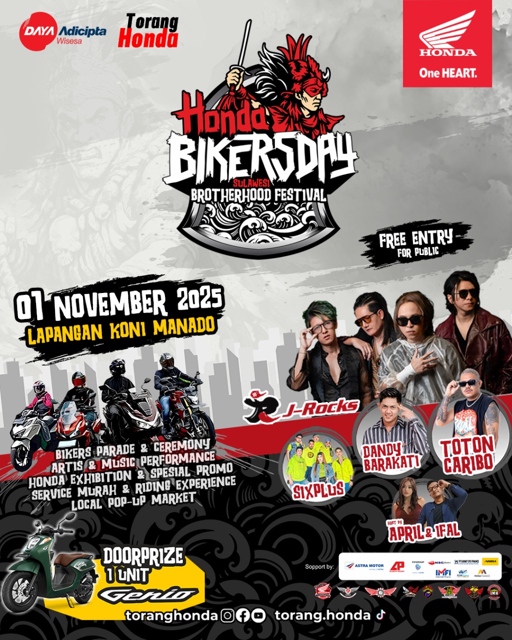 Karena itu, kami mengajak seluruh bikers dan masyarakat di Sulawesi untuk hadir dan merasakan langsung euforia Honda Bikers Day Regional Sulawesi 2025,” ujar Bonny Pandelaki, Promotion Dept. Head PT. Daya Adicipta Wisesa.