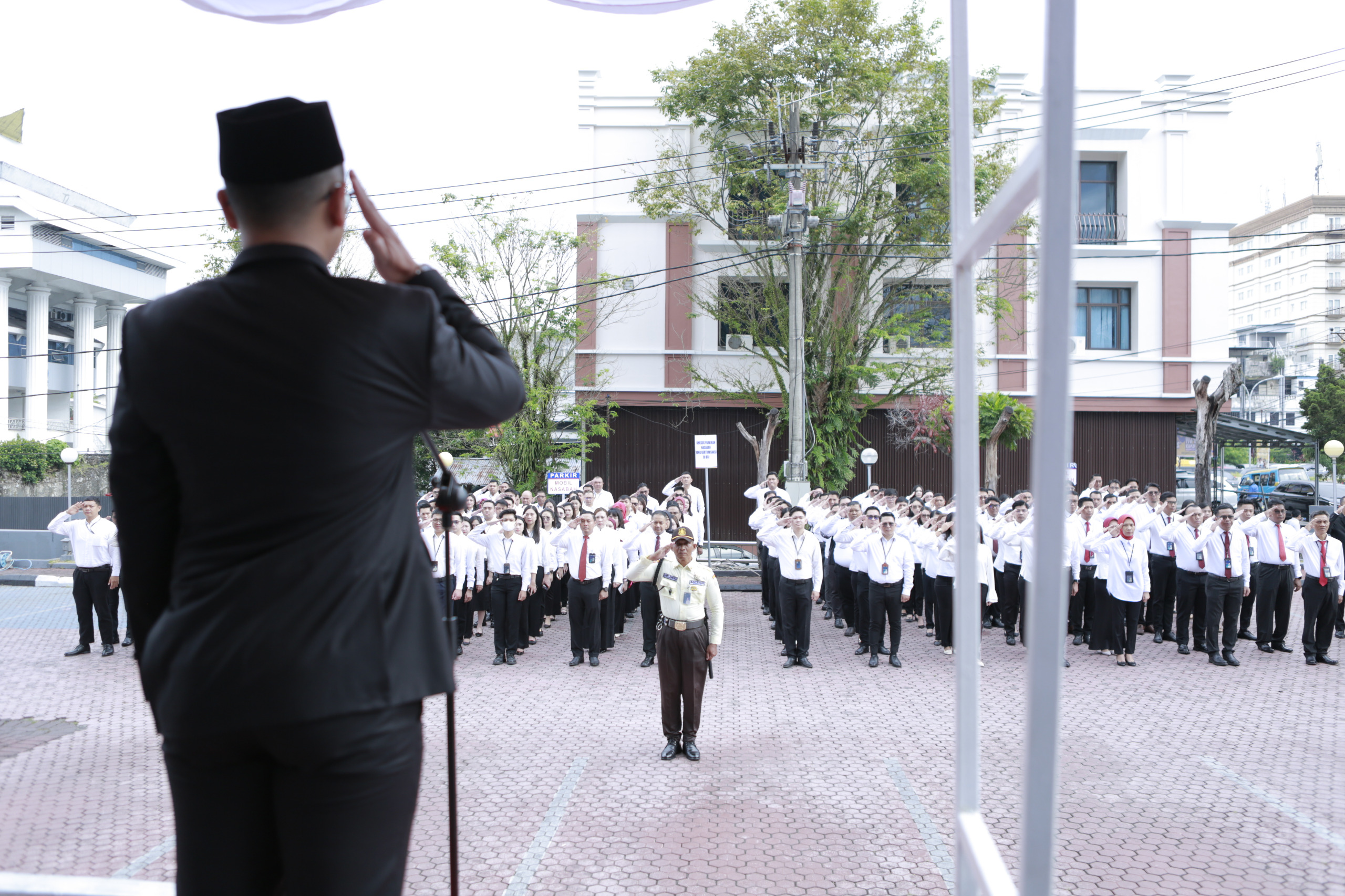Regional Funding dan Transaction Banking Head BRI Regional Office 16 Manado Faizal Rizqi memimpin langsung  dengan mengenakan pakaian dinas lengkap.
