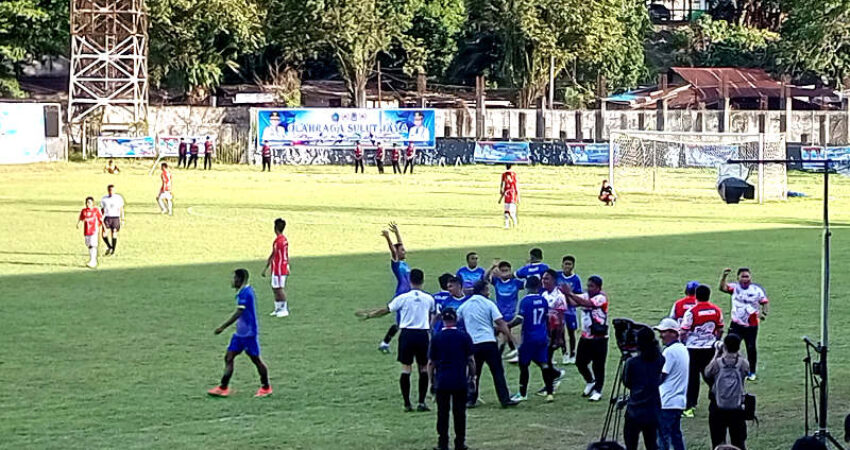 Koran Manado News— Final sepakbola Porprov XII Sulawesi Utara 2025 berlangsung panas dan penuh tensi tinggi.