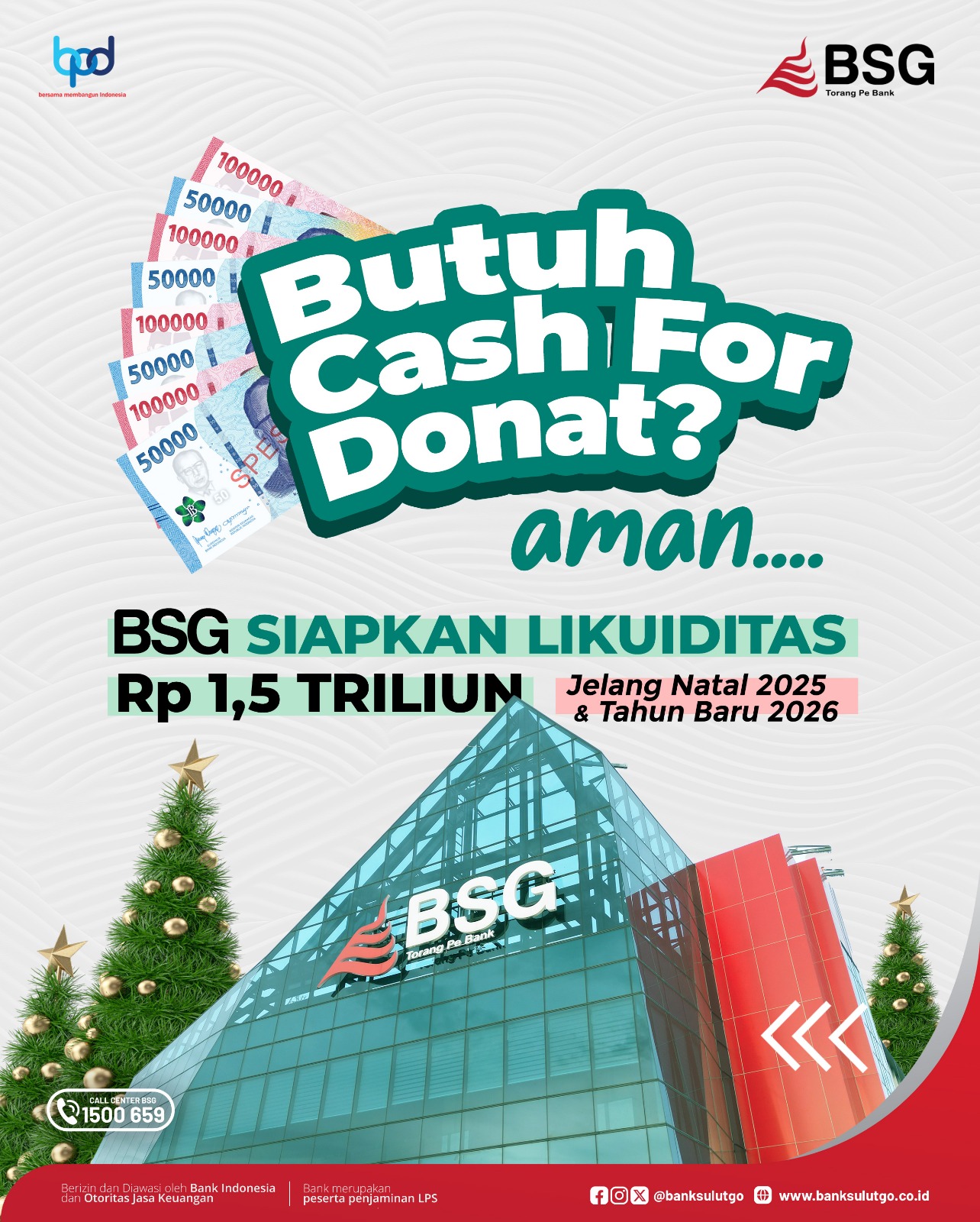 Direktur Utama BSG Revino Pepah mengatakan, tahun ini, BSG menyiapkan Rp1,5 triliun untuk menjamin ketersediaan uang tunai yang mencakup seluruh jaringan layanan, mulai dari ATM, kantor cabang, hingga channel digital.
