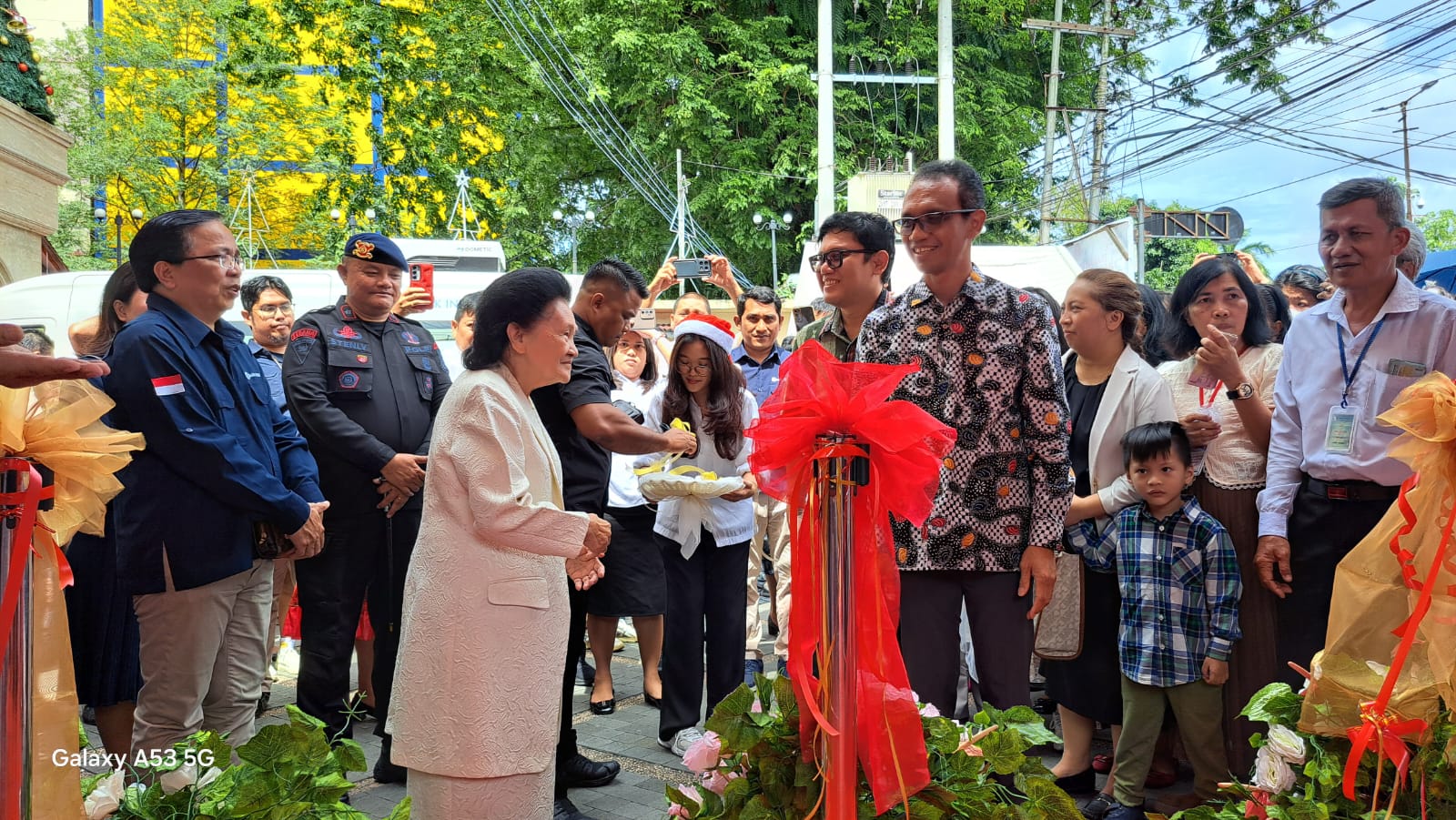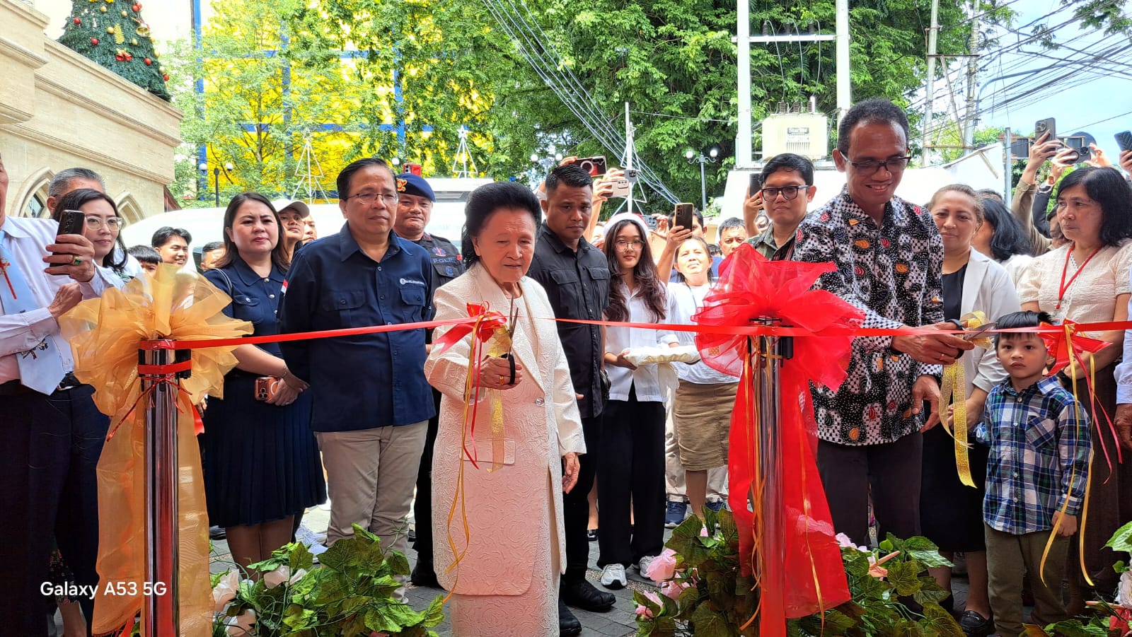 Kepala Perwakilan BI Sulut, Joko Supratikto, bersama Ketua MD GPdI Sulawesi Utara, Pdt. Yvonne Awuy-Lantu menggunting pita launching Program Serunai 2025 di GPdI Pusat Samrat Manado, Minggu, (14/12/2025) (foto:ferry)