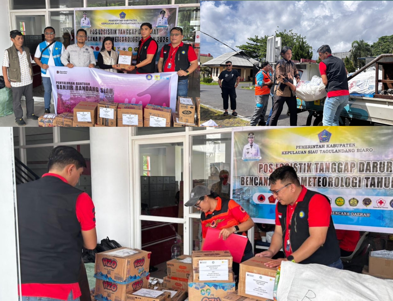 Bantuan diserahkan secara simbolis di Posko Utama Logistik, Gedung Perpustakaan Pemerintah Daerah Sitaro, dan diterima langsung oleh Bupati Kepulauan Sitaro, Chyntia Ingrid Kalangit, SKM.