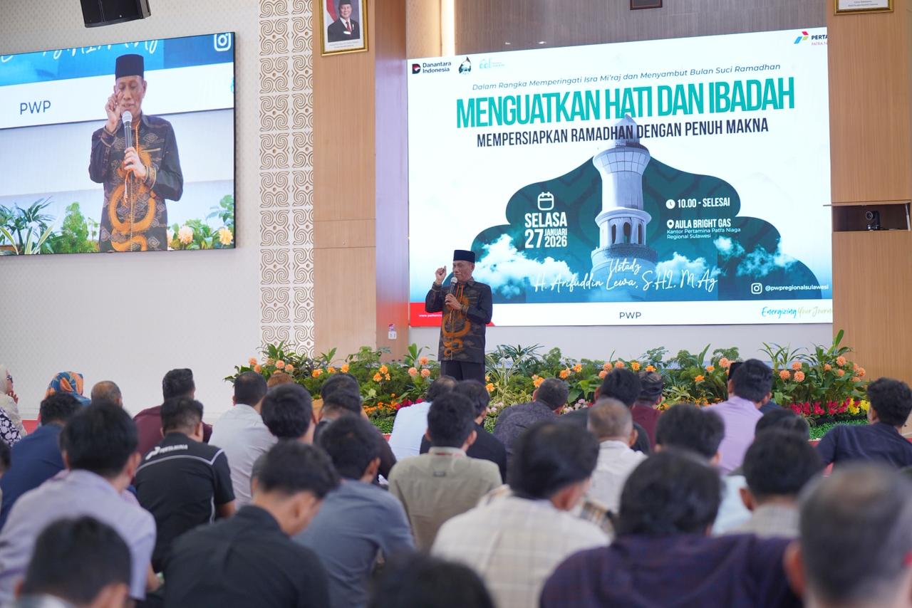 Makassar, Koranmanadonews.com— Dalam rangka memperingati Isra’ Mi’raj Nabi Muhammad SAW sekaligus menyambut datangnya bulan suci Ramadhan, Pertamina Patra Niaga Regional Sulawesi menggelar kegiatan bertema “Menguatkan Hati dan Ibadah, Mempersiapkan Ramadhan dengan Penuh Makna”. Kegiatan ini berlangsung di Aula Bright Gas, Kantor Pertamina Patra Niaga Regional Sulawesi.