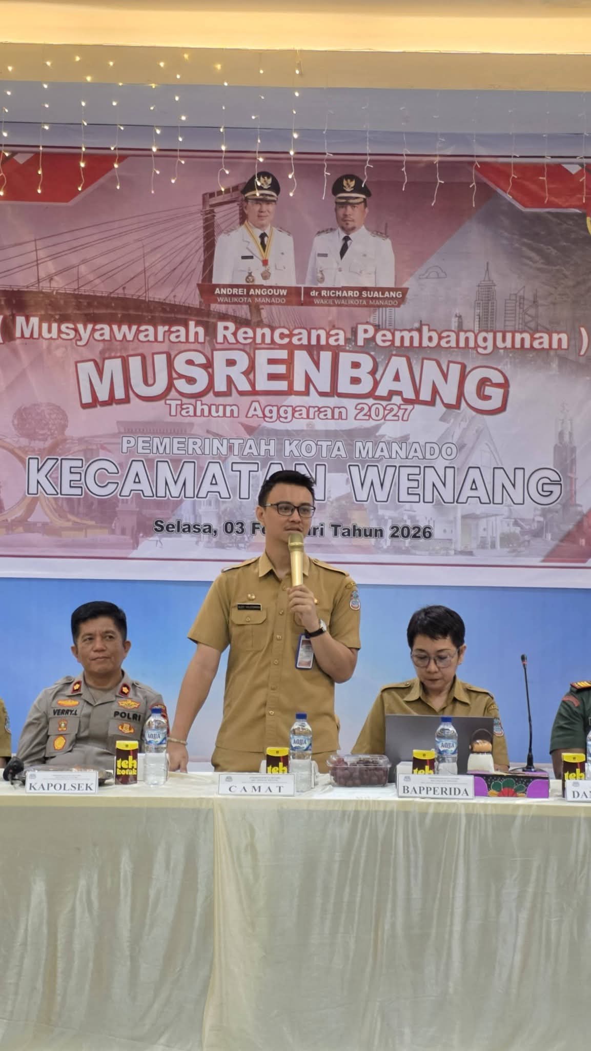 Koran Manado News– Pemerintah Kecamatan Wenang melaksanakan kegiatan Musyawarah Rencana Pembangunan (Musrenbang) tahun anggaran 2027. Kegiatan ini dilaksanakan Selasa, 03 Februari 2026 di Lt 5, gedung It Center Manado.