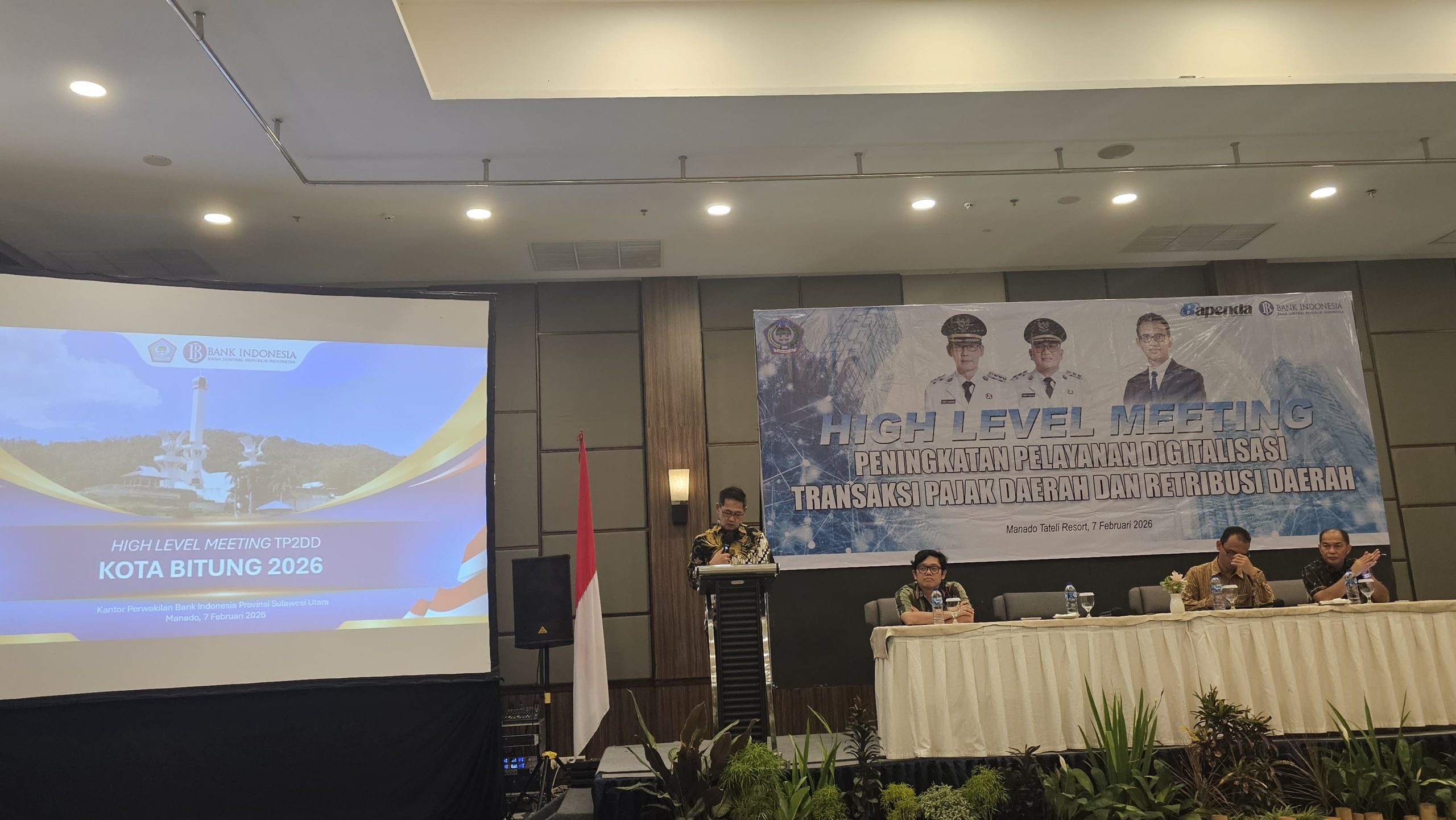 Bitung, Koranmanadonews.com- Pemerintah Kota (Pemkot) Bitung bersama Kantor Perwakilan Bank Indonesia Provinsi Sulawesi Utara mengevaluasi kinerja digitalisasi pajak dan retribusi daerah melalui kegiatan High Level Meeting (HLM) Tim Percepatan dan Perluasan Digitalisasi Daerah (TP2DD) Kota Bitung yang digelar, Sabtu,(07/02/2026).