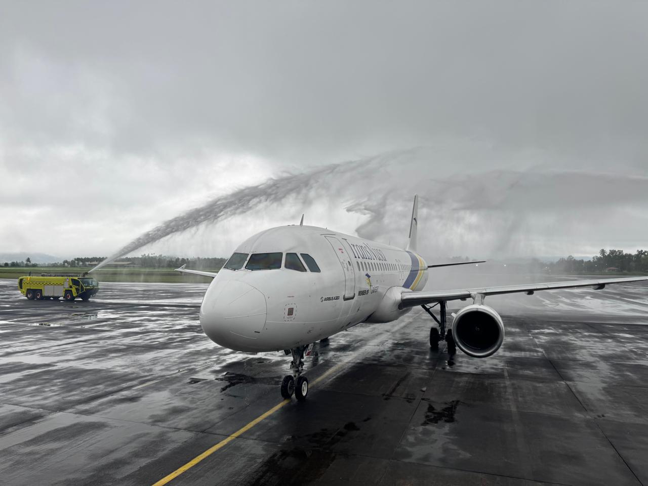 Koran Manado News- Maskapai TransNusa dengan nomor penerbangan 8B-702 resmi membuka rute penerbangan internasional dari Bandar Udara Internasional Taiwan Taoyuan menuju Manado, Sabtu (14/02/2025), pukul 17.10 WITA .
