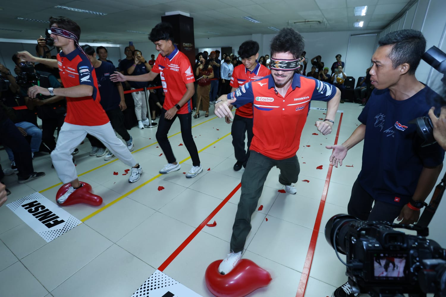 Dalam aktivitas ini kedua pebalap Honda HRC Castrol ini menikmati momen yang akrab dengan melakukan permainan seru bersama dengan bikers Honda.