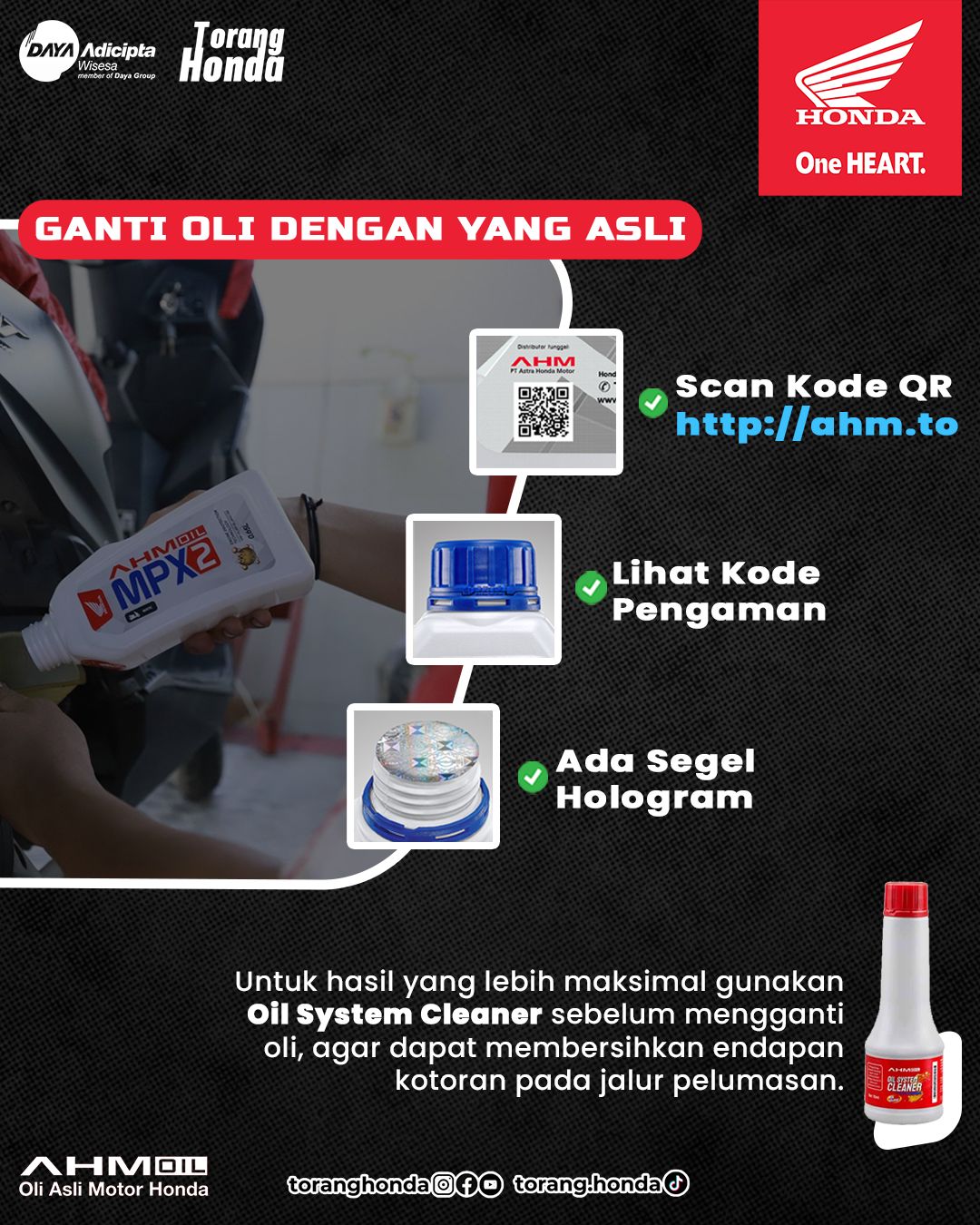 Selain itu, konsumen juga diimbau untuk selalu memastikan keaslian oli yang digunakan saat melakukan penggantian oli, agar perlindungan terhadap mesin tetap maksimal.